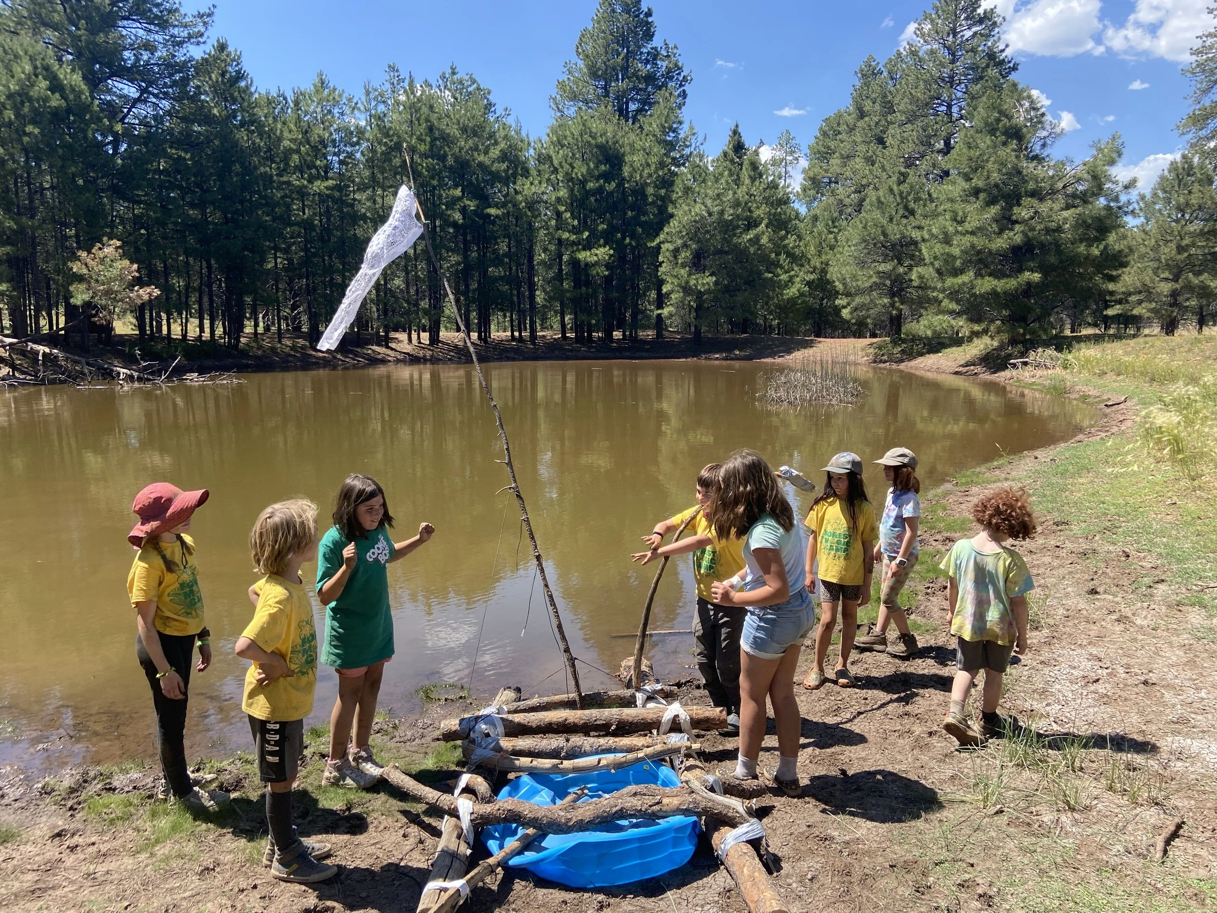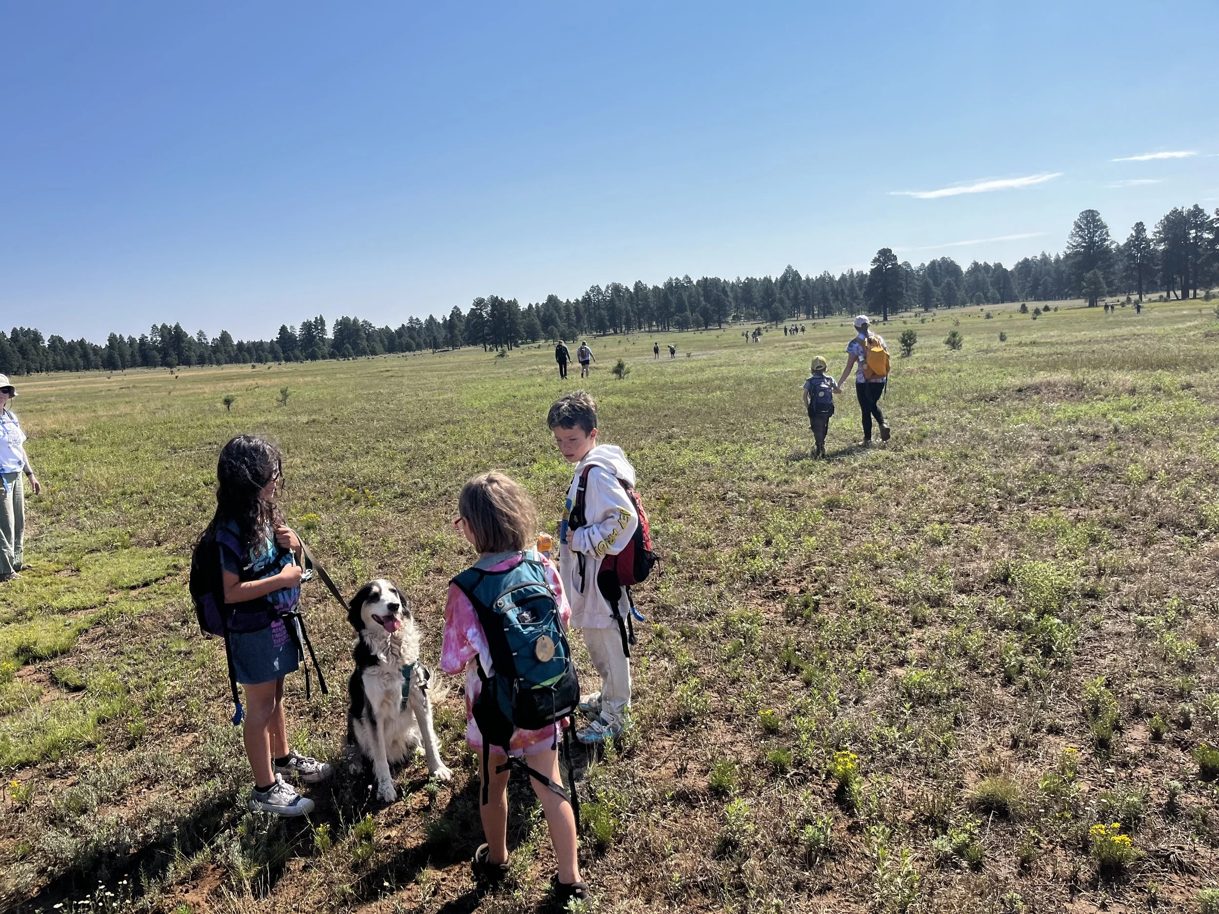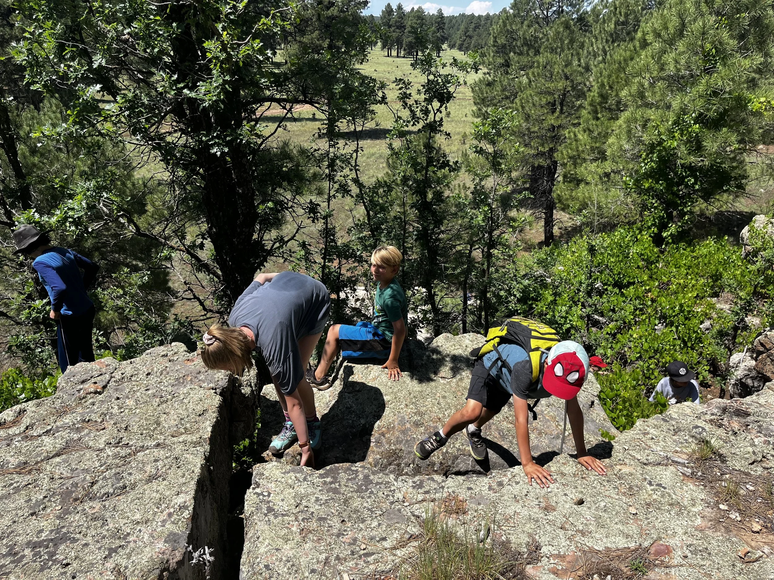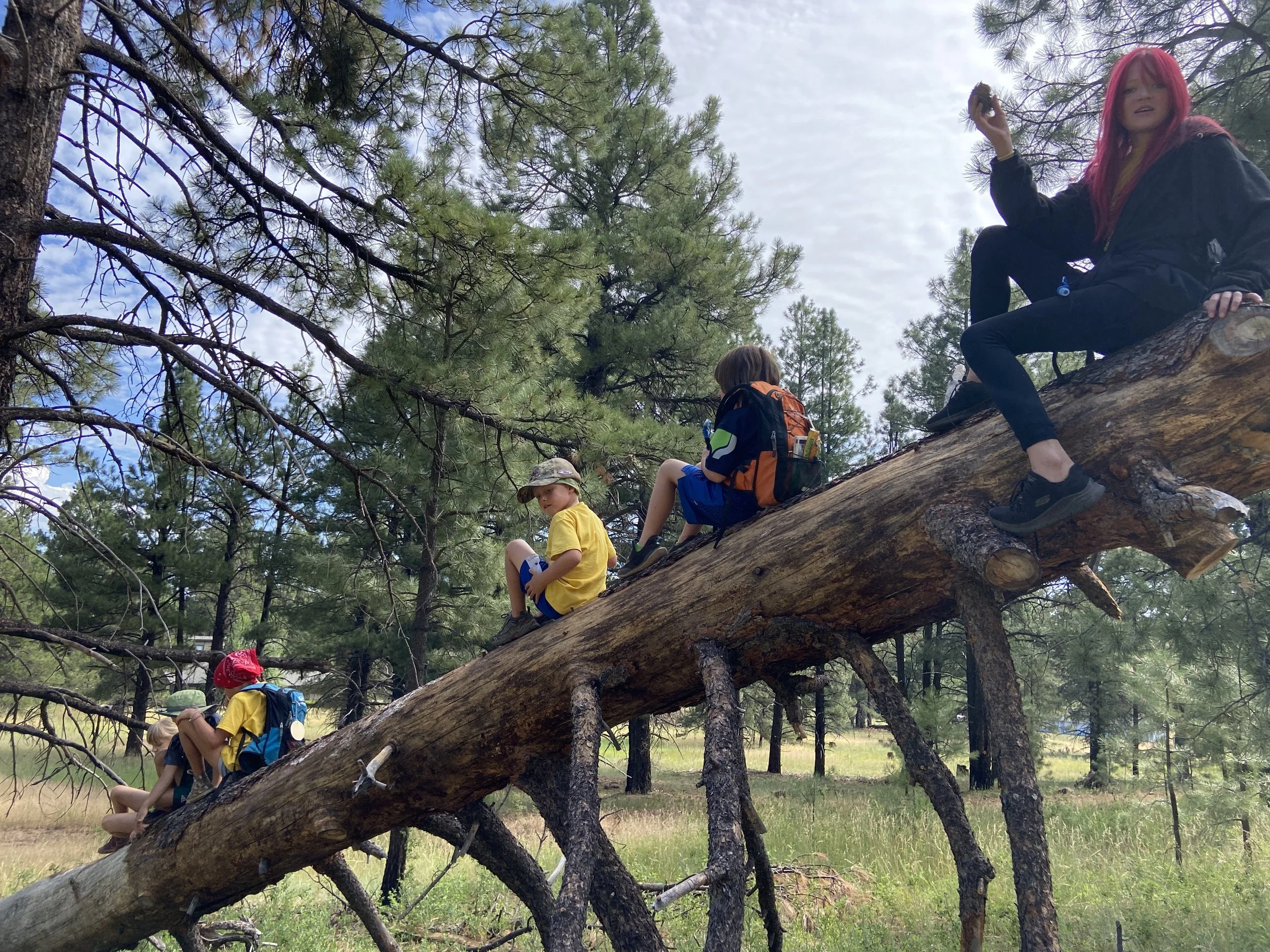 We will give you exact location after registration, we meet in the Coconino National Forest near Mountainaire, which is the neighborhood at exit 333 on I-17, three miles south of the Fort Tuthill / Airport Exit in Flagstaff. Kids hike up to the plateau where camp lives from the drop off trail head, which is accessible by any car, although you get slightlky closer with a higher clearance vehical on the short portion of forest road to the trail head. Then they get their packs ready to go for the day.